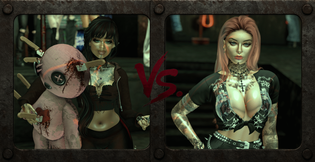 The night opened with a storm in human form: Syd swinging her stuffed, knife-loaded voodoo doll like a deranged battle standard against the armored, blade-fingered powerhouse Karigan. Karigan’s metal-tipped claws shredded Syd’s doll and drew the first blood, but Syd’s feral momentum only built. With a final vicious slice and a takedown that rattled the pit floor, Syd overwhelmed the other fighter and secured the first victory of the night.